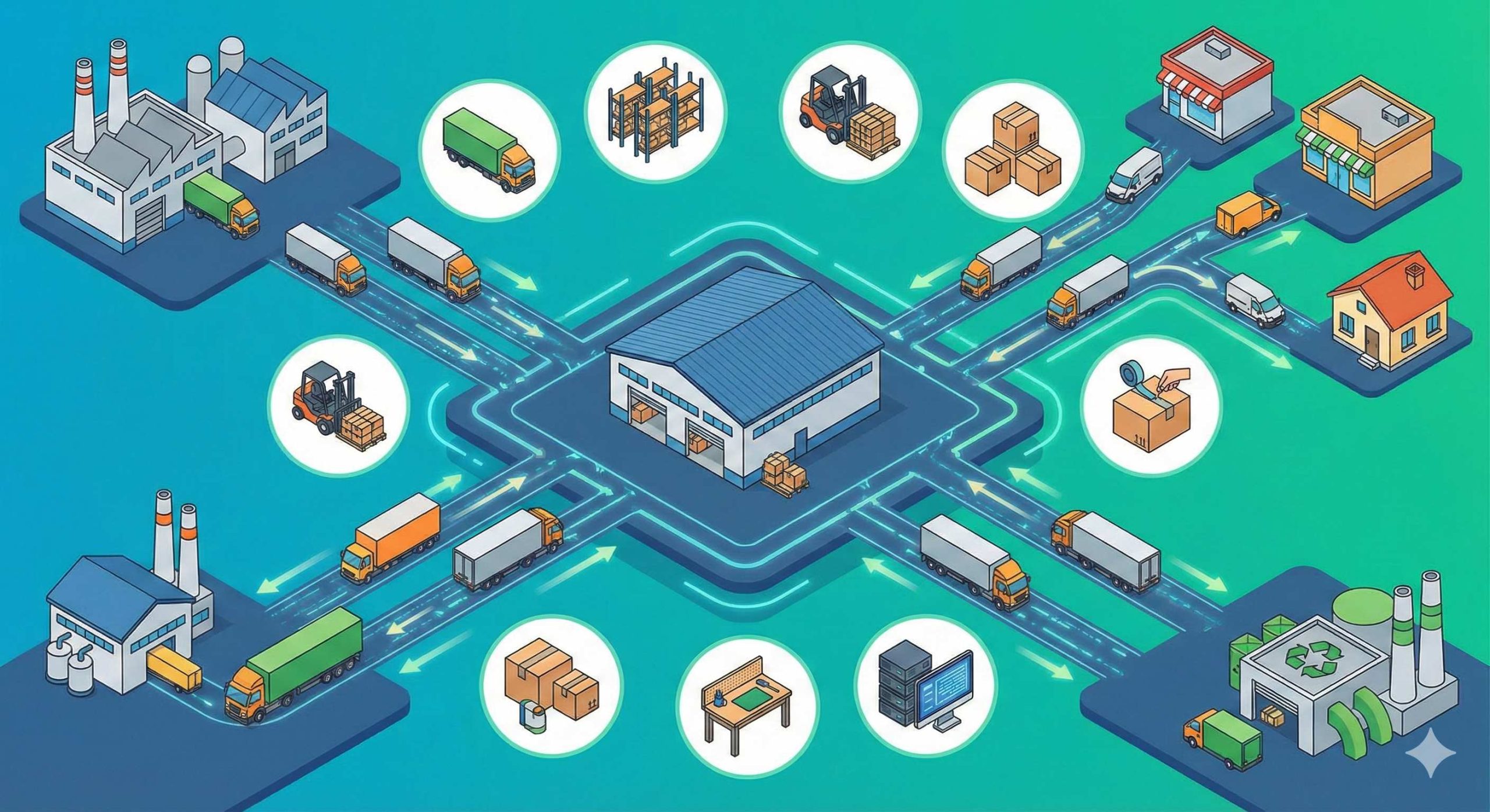 物流の流れは、単一の企業内だけで完結するものではありません。原材料の調達から工場での生産、そしてエンドユーザーへの販売まで、一連のサプライチェーンとして捉える必要があります。この「モノの連鎖」をスムーズに繋ぐことが、経営効率の最大化に繋がります。